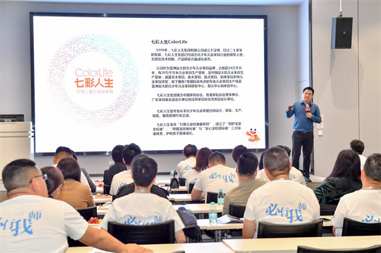 黄世学总监为到场嘉宾们一一深入讲解品牌内容和定制模式,从七彩人生的发展历程及旗下各大系列产品特点,沉浸式体验七彩人生品牌升级的迭代转变和原创产品的魅力。