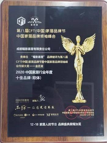 面对疫情,耀影家居通过质量提升、创新生产等手段,在危机中育先机、于变局中开新局,多年来,耀影家居始终坚持“客户至上、诚信务实、创新求变、幸福快乐”的核心价值观,孜孜以求为客户创造价值,以健康、高端、舒适的产品广受社会各界的认可。耀影家居曾荣获2019影响中国家居生活方式品牌榜TOP10、年度IP营销、年度口碑之选、国潮单品、最受消费者喜爱、创新设计产品和2019年度投资价值品牌奖等多项荣誉。