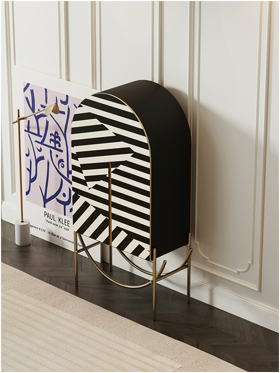 圆弧顶不规则黑白条纹柜子