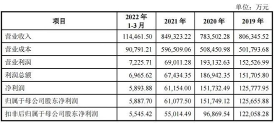2019-2021年,新明珠集团营收分别为80.63亿元、78.35亿元、84.93亿元,扣非净利润为12.21亿元、9.69亿元、5.501亿元。2022年1-3月,新明珠集团营收为11.45亿元,扣非净利润为5,545.42万元。