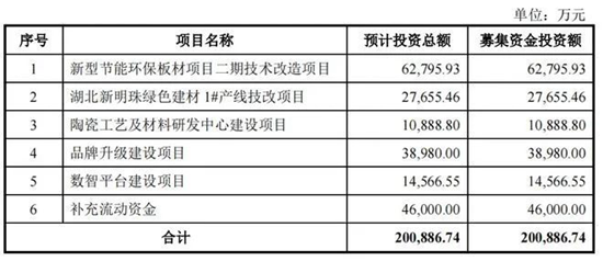 ① 新型节能环保板材项目二期技术改造项目,拟使用6.28亿元;