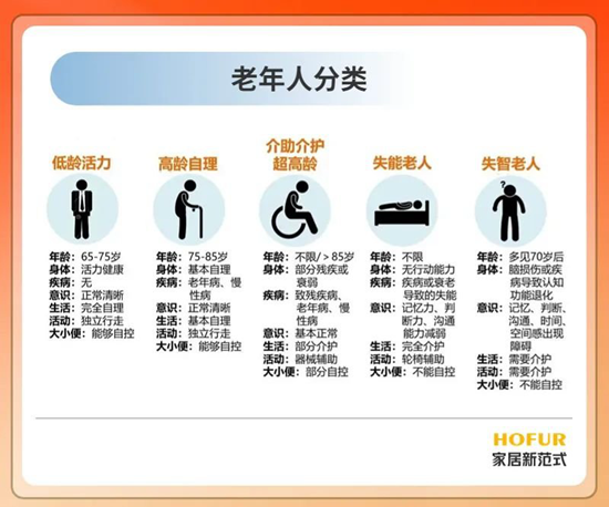 在新浪潮的波涛中,涌现出天坛家居、美勒森等头部老年家居专业品牌以及京东居家等综合家居服务商,形成以健康活力型、介助护理型、长照失能型三类家居为主的适老化家居市场格局,适老化家居也正逐步成为社会刚需。