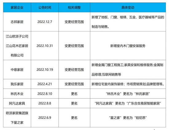 接下来,让我们来回顾一下2022年有哪些家居企业更名及变更了经营范围!