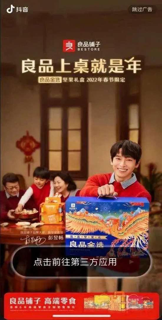以大众消费品牌非常看重的节点营销为例,重要节点期间流量会比较紧张,单纯投放效果广告转化成本较高,怎么才能降本增效?品效协同就是一个不错的尝试。良品铺子在一次年货节的营销中,通过「效品效」,拓展品牌竞价高潜力人群,然后投放抖音品牌信息流和抖音TopView,最后追投竞价方式。在这样的组合玩法下,效果广告触达比例最高可翻倍,效果广告CTR提升最高达32%,品牌投放不仅提升竞价跑量,也促进了高价值人群转化率。