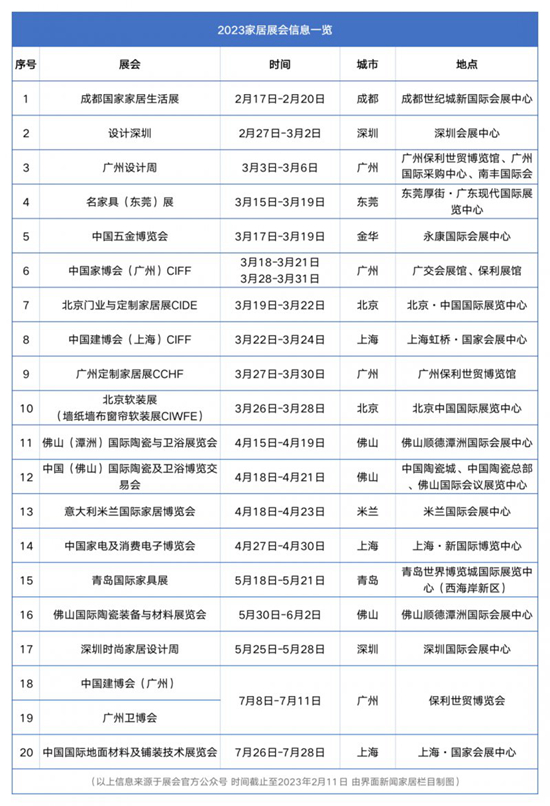 2023年,国内已有19个家居展会定档