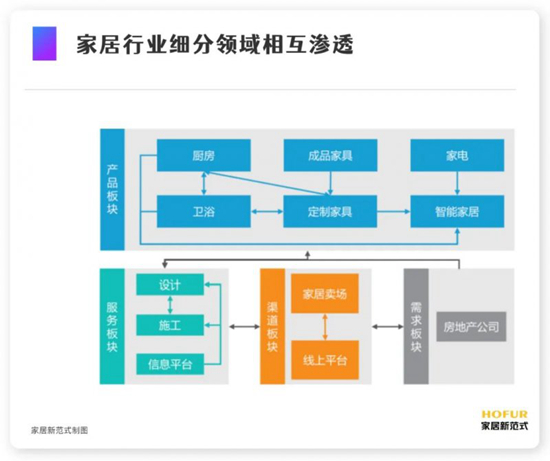 规模较大、资金实力较强的家具企业通过战略合作、跨界投资等路径来扩大业务范围,不断优化战略布局。据亿欧数据,目前家具行业各细分领域相互渗透的情况多见,企业开始在产品、服务、渠道等多方面进行融合,走向整装大家具方向。