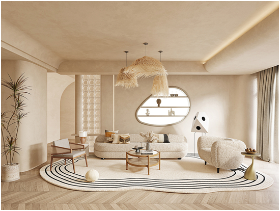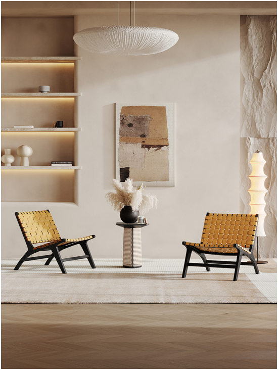 客厅,作为家居环境中出镜率最高的地方,营造清爽宜人的客厅空间尤为重要。在客厅布置的时候,选用洛品有家侘寂系列家具。比如藤质休闲椅,置于屋内一角,搭配绿植装饰,清新自然中又透出古朴沉稳的意境,对避暑相当有益,是休息及会客的特色空间。