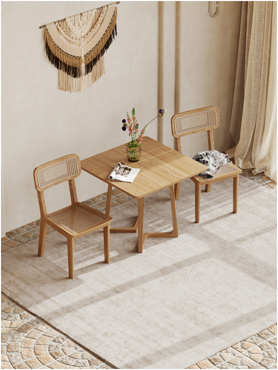 炎热的夏天总有理由让人食欲不振,而正确的打开方式是通过空间布置制造夏日清凉气息,同时增添了一份生活气息。洛品有家一套木质餐桌椅,线条柔和,能让人快速融入安逸舒适的环境中,不会占用餐厅太多的面积,使空间看起来局促。