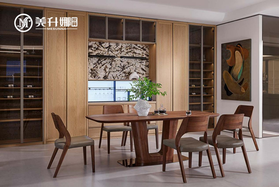 ·甄选良材,奠定温暖底蕴:美升娜甄选色泽深邃、纹理如画的北美黑胡桃木。其经手工精细打磨后,触感温润如玉,天然的木纹为家居空间注入一份经年沉淀的从容与雅致,成为团圆时光最温暖的底色。