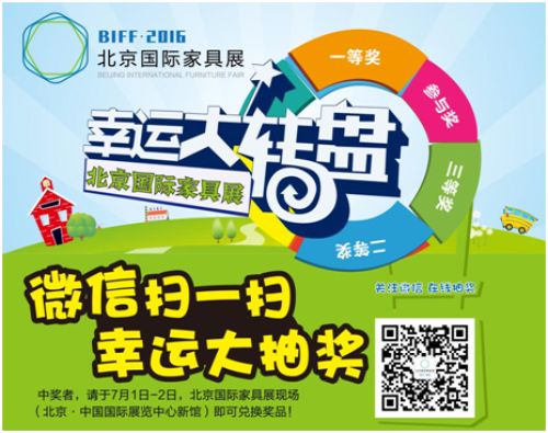 即日起到6月30日,关注北京国际家具展官方微信:北京国际家具展/biff-china,点击进入“网上展会”,任意点击一家企业,进入页面后即可免费参与第一重抽奖!7月1日-2日,展会现场还可参与第二重抽奖。更多精彩尽在BIFF·2016北京国际家具展。