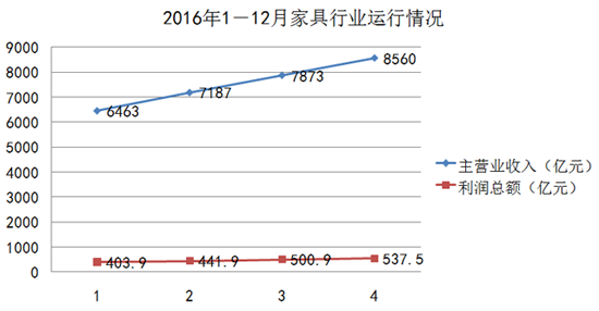利润方面,2016年中国家具制造业增速相比2015年下降了6.1个百分点,为7.9%;相比全国工业利润增速低了0.6个百分点,后者增速为8.5%。