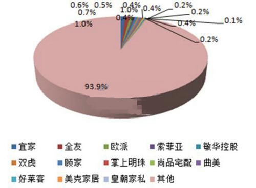 据前瞻产业研究院《中国家具行业市场需求预测与投资战略规划分析报告》的分析,当下我国家具行业的集中度不高,仅有的几家知名企业,在市场上占据的份额非常小,行业集中度不高。