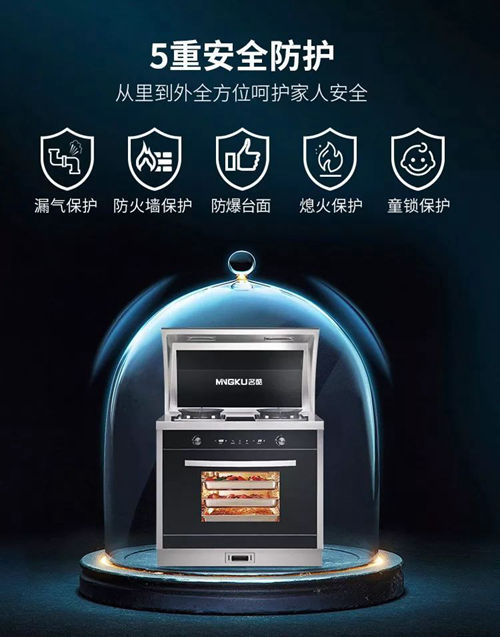 名酷蒸箱款集成灶,采用蒸汽后排技术,轻松放置四层,烹饪期间食物互不串味,美味只需等待,大大节省下厨时间。