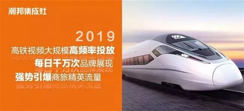 2017年,潮邦集成灶便开启与高铁时代接轨的品牌建设之路,重金投放多辆高铁列车,“潮邦号”行走在全国各大高铁线路,品牌传播进入高速拓展轨道。据悉,潮邦共投放了几十列高铁列车车厢广告,广告全面涵盖了高铁列车内的海报、头巾等所有显眼位置,形成了全覆盖的传播,影响了近一亿人次,引领了品牌快速发展!