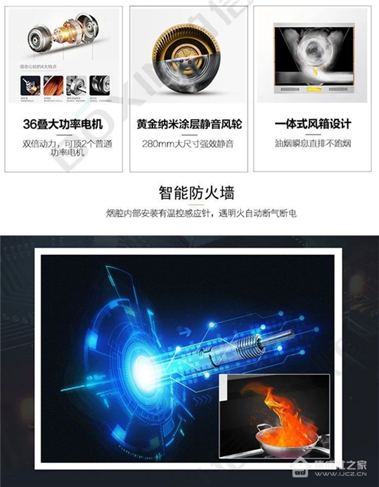 此外,其还采用了防火墙技术,燃烧状态下火焰意外进入灶腔,防火墙感应装置感应到后将自动切断气源和风机电源,火源瞬间熄灭,从而保证安全性。