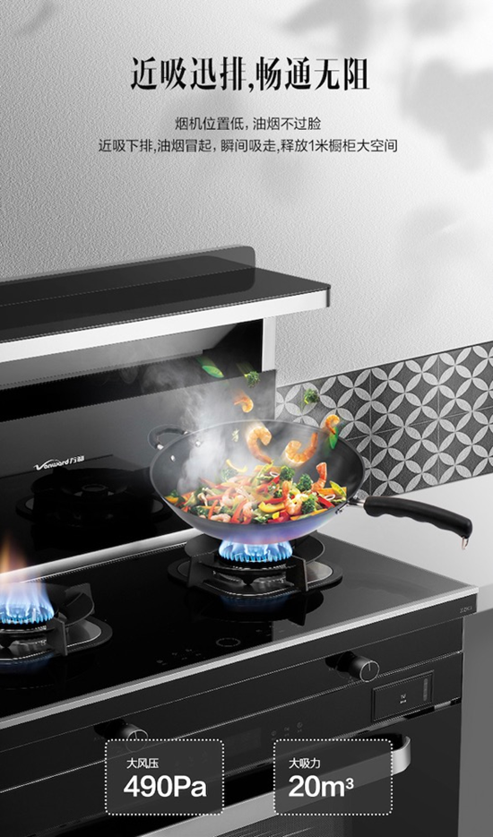 厨房消费者最关心的是如何保持清新空气,保持呼吸的顺畅。万和蒸烤集成灶ZZK3,拥有20m³的大吸力与配合低位近吸,只有油烟一冒,瞬间吸走。同时,搭配490Pa大风压,在做饭高峰期也畅通无阻,实现近吸快排,让用户随时都能呼吸到新鲜空气。
