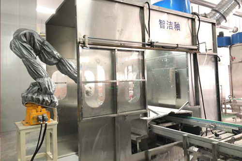 在陶瓷制造生产的过程中,表面喷釉和修坯打磨是卫浴陶瓷是相对较容易使工人健康受到伤害的两个环节。为了优化这两大关键工艺环节,将对人员伤害降到最低,东鹏在这两个工序中大量应用了机器人和专用工艺设备,机器代替人工,在避免恶劣工作环境对人体伤害的同时,也提高、保证了产线的生产效率和质量一致性。