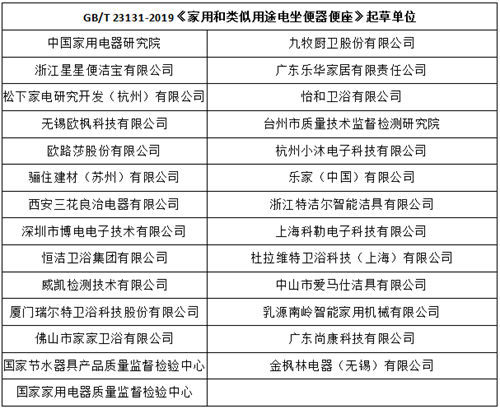 标准的编制,生产企业的参与必不可少。根据全国标准信息公共服务平台,参与新国标起草的单位有27家,除了数家国家及行业机构,其余大多是国内乃至全球智能马桶领域中的代表企业,可见新国标规格之高。