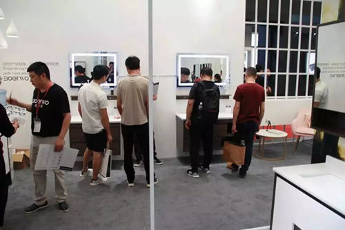 泊尔沃从2015年开始参加上海厨卫展,至今已连续五年参展,其中2016年至2019年都是以免漆生态板系列浴室柜为主推产品。