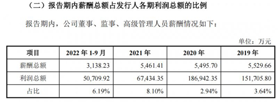 董监高等企业高层、核心管理人员可能也面临同样境地。一陶企公司董事、监事、高级管理人员薪酬总额在2020、2021年基本持平,而在2022年1-9月,其核心人员薪酬占利润总额的比例出现了下滑。
