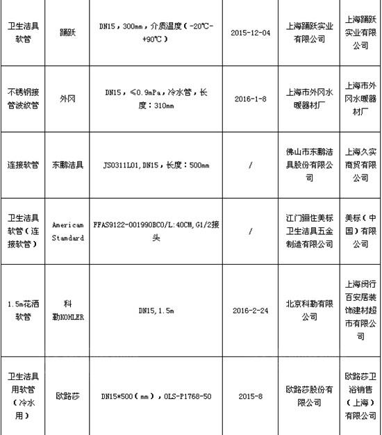 上海市质监局抽查20批次卫生洁具软管产品
