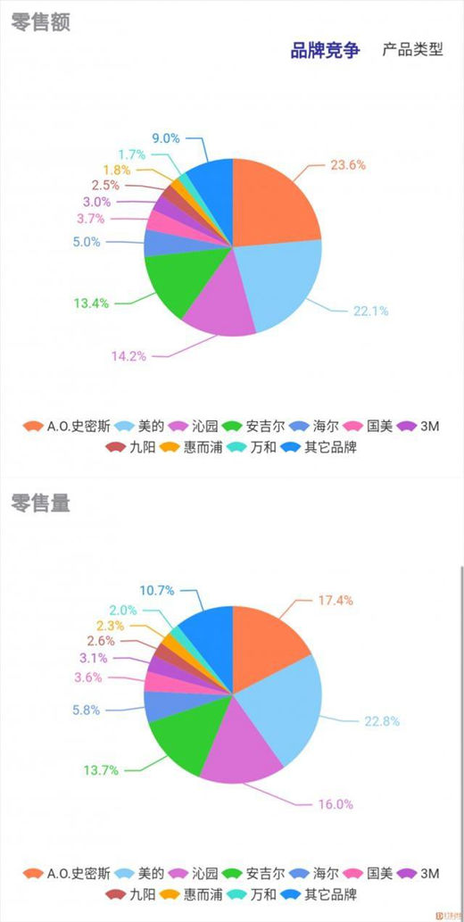 从数据中可以看到,目前净水器市场寡头效应并不明显,头部品牌之间的差距并不大,未来各品牌持续发力,用更具产品力、更具创新力的产品获得消费者青睐,市场或有更大的变动。