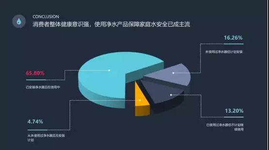 您家中是否安装了净水器?调查显示,35890人表示,“已安装,使用中”;8870人表示,“未使用过,计划安装”。净水行业经过几年发展后,净水消费认知普及程度得到了提高,消费者用水健康已成为刚性需求。