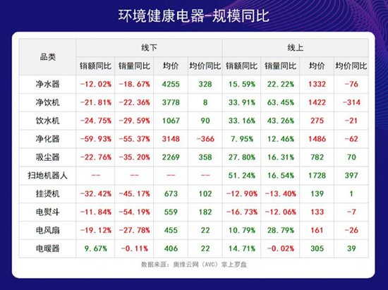 线下:净水器销售额同比下降12.02%,销量同比下降18.67%,均价4255元;净饮机销售额同比下降21.81%,销量同比下降22.36%,均价3778元。