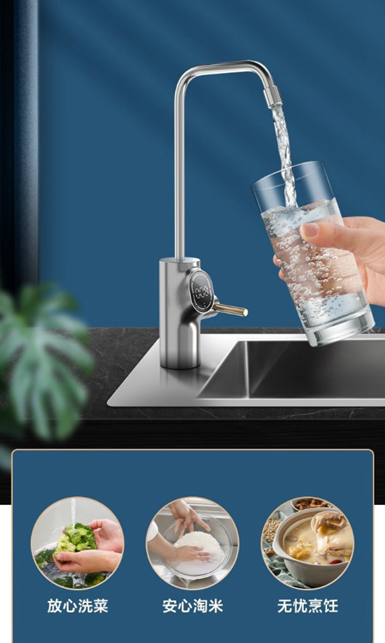 美的白泽1000净水机在水质方面做到高效,细节方面更是处理周到。132mm的纤薄机身,省出更多储物空间。同时,为了方便查看水质,美的白泽1000净水机搭载了智显水龙头,查看水质以及滤芯状况都无需打开橱柜,只需要看纯水龙头的屏幕显示,就能随时知晓滤芯使用寿命,实时监控好水质。