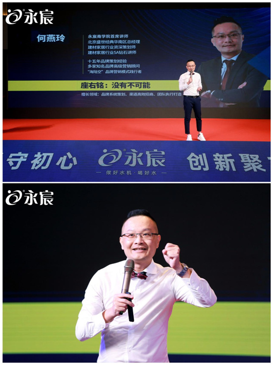 永宸峰会邀请到两位重磅级嘉宾——国家级伊宁边境经济合作区高级顾问、景德镇陶瓷协会副会长、中华大典陶瓷艺术分典副主编 欧阳天生先生和广东保健协会常务理事、中国生殖健康产业协会常务理事陈水来先生分别作精彩演讲。他们从专业的维度分析行业趋势,充分肯定永宸饮水事业取得的成果,并预祝永宸本次峰会圆满成功,预祝永宸今后在市场竞争中取得更多优异的成绩!