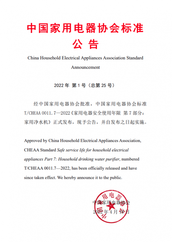 近日,由中国家用电器协会指导、中国家电网主办的“双碳我先行 TAN出新生活 畅享健康水 至臻水世界”2022中国家庭全屋用水行业高峰论坛于线上举行。会上,主办方还举行了T/CHEAA 0011.7-2022《家用电器安全使用年限 第7部分:家用净水机》(下称“净水机安全使用年限标准”)宣贯活动,推动行业进一步绿色健康发展。