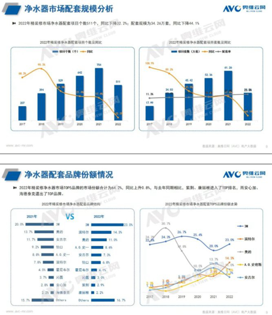 奥维云网(AVC)《2022年房地产商品住宅精装修市场热水器&净水器年报》总结精装修市场热水器、净水器产品呈现以下特征: