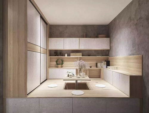 透过深、浅木纹的板材样式混搭,展示与收纳区结合,方案设计带着稳重感。大面积的白色素色板材混搭色彩,让氛围活泼有趣,衣柜与酒柜以及桌子的结合,则有效运用每寸空间,利用柜子让物品完美归位!