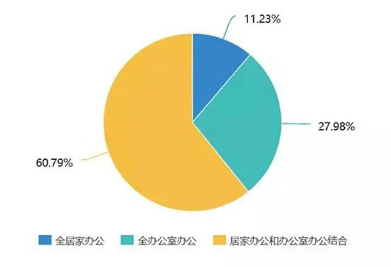 近日,某家居品牌针对全国1万名职场人士做了《居家办公是众向所归的趋势吗?》的调查报告,数据显示,喜欢居家办公的人只有11.23%,而选择居家办公和办公室办公结合的占60.79%。