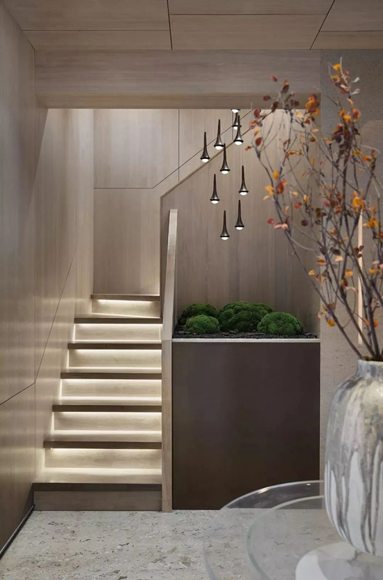 从梳理空间功能动线入手,并将中西方共通的礼制注入空间规划中。别墅一共四层,一层设定为公共区,包括客厅、餐厅与兼具社交功能的露台,二层以上为私属专享空间,其中三层新增家庭互动休闲空间,可以与家人共享天伦之乐。