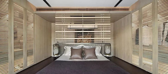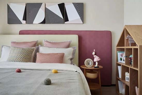 次卧空间位于三层,在设计表达上更倾向于营造现代气息。轻盈通透的线条包裹整个衣帽间,若隐若现,简洁纯粹,与方正空间形成虚实相间的和谐。优雅的色调,点到为止的少量装饰物,赋予了空间优雅的气质,带来舒适家的味道。