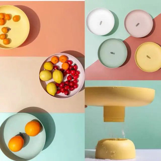 盛放刚刚洗过的水果的果盘总是会有这样的情况:盘底总有一汪水,让人感觉很不爽。这个看似“平平无奇”的水果盘,最贴心的设计在于几个简单的小孔,这样的镂空设计一下就解决了大问题,底座可拆卸,可以轻松将积水倒出。