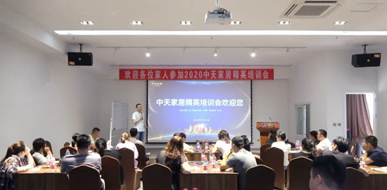 2020中天家居“新突破 聚赋能”计划培训会在中天家居总部圆满落幕。7月20日-23日,为期4天的培训过程,从品牌崛起之路、原材料甄选、工艺流程解析、品牌DNA深挖,到品牌全系列产品卖点分析、导购礼仪、销售技巧等各个环节系统开讲,让新加入中天大家庭的家人们,快速融入,内外兼修,为客户提供真诚专业整体家居服务的同时,让自身价值最大化!