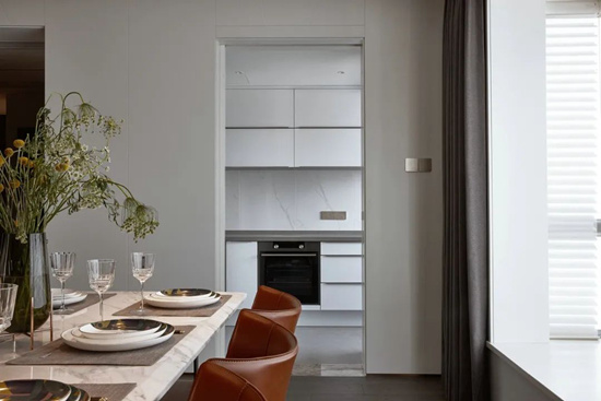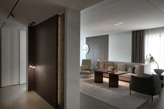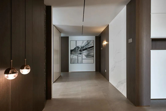 明暗材质的律动中,光影的点缀和装饰画的融入,将过道打造成艺术长廊,牵引情绪与感知,让穿行成为仪式的启展。