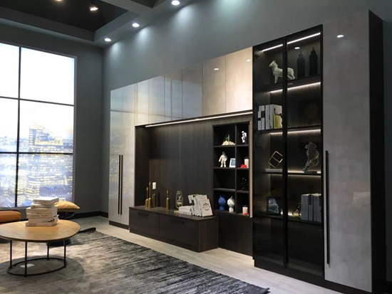 整家空间全屋定制家居主要将玻璃门板应用在“极简”系列中,这样柜门边框被铝钛合金的金属框架包裹着,质量十分可靠。