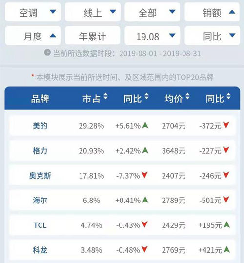 奥维云网8月份空调线上市场的数据不难看出,空调市场整体呈现出以下五大特征: