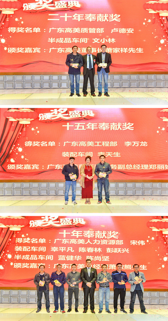 高美公司领导亲自为表现杰出、贡献巨大的高美家人颁发“优秀员工奖”、“十年员工奉献奖”、“十五年员工奉献奖”、“二十年员工奉献奖”等荣誉奖项。积极融洽的工作氛围和长远的发展空间,留住了一届又一届的高美人在此为梦想拼搏,在卓越和团结的群体中共同竞争、相互促进、自我成长。
