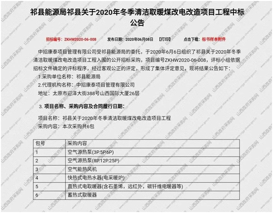 再传捷报!欧思丹成功中标2020年山西祁县煤改电项目