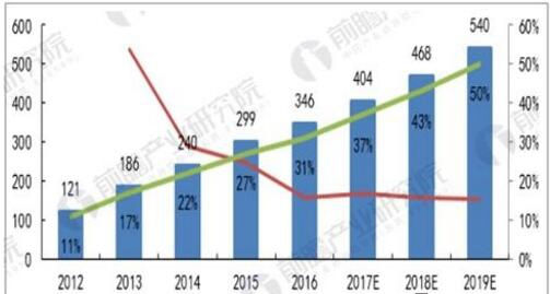 根据前瞻产业研究院发布的《LED行业市场前瞻与投资战略规划分析报告》数据显示,2016年全球LED照明的渗透率在31%左右,预计2017年LED照明市场规模将达到404亿美元,渗透率达 37%,预计2017-2021年全球 LED照明年复合增长率为12%。