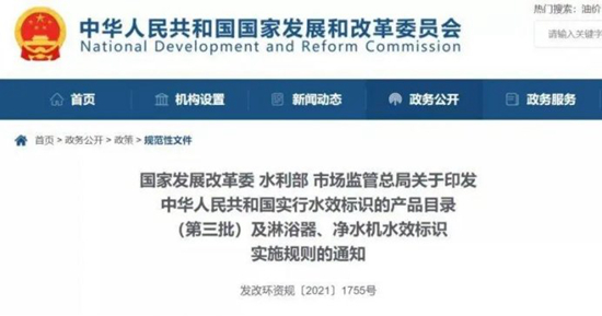 近日,国家发展改革委、水利部、市场监管总局联合印发了《人民共和国实行水效标识的产品目录(第三批)及淋浴器、净水机水效标识实施规则》。