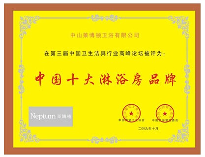 莱博顿卫浴有限公司凭借逆势上扬的销售业绩,突出的品牌形象,创新的管理机制以及良好的社会美誉度,被评为“2011年度十大淋浴房品牌”。