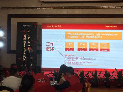紧接着,莱博顿公司高层对2016年莱博顿工作进行整体的概述和总结:2016年,在严峻的市场环境下,莱博顿凭借着有效的销售策略和坚定的信念,在全国各地稳扎稳打,探索出符合自身的发展模式,并取得了傲人的成绩。而这些的成绩与发展,离不开一众优秀经销商的拼搏与努力。