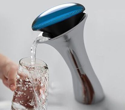 在水龙头的顶部,带有非常直观的LED显示屏。用户只需要进行触摸,就可以轻松出水。当使用冷水的时候,显示屏就会呈现出蓝色;使用热水的时候,就会变为红色,非常直观。