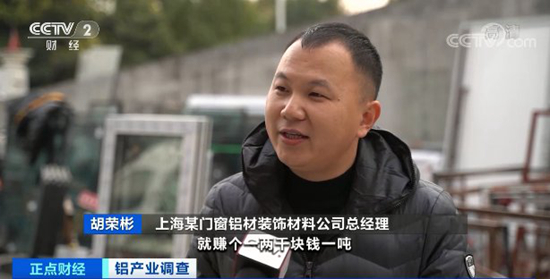 上海某门窗铝材装饰材料公司总经理胡荣彬:我们零售可能赚一两千元一吨,但是铝锭原材料价格一下跌三四千元,这对我们的利润空间压缩很大。