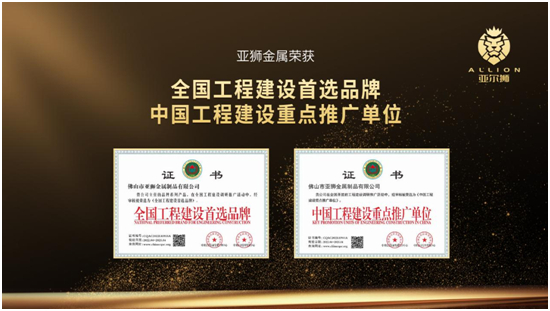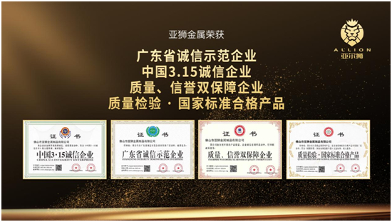 正是这份初心、信念,让亚狮金属屡屡受到政府、业界、经销商和客商的肯定,不断收获荣誉。荣誉的加持,让亚狮以更高的要求约束自已,在品牌建设上行稳致远。